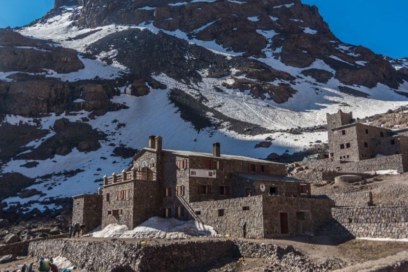 Pour les alpinistes plus expérimentés, le Toubkal offre des possibilités d’escalade en hiver lorsque ses pentes sont recouvertes de neige et de glace. Les conditions hivernales rendent l’ascension plus technique et nécessitent généralement une expérience préalable en alpinisme. Il y a un refuge de montagne bien équipé appelé le « Refuge du Toubkal » situé à environ 3 207 mètres d’altitude. Beaucoup de randonneurs passent une nuit au refuge avant de faire l’ascension finale au sommet le matin suivant.