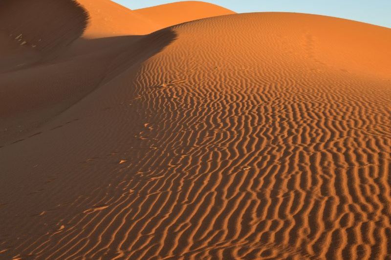 Jour 3 : Randonnée dans les dunes (Est) Exploration des ergs Bouguerne et Dâya Aoutid avec pique-nique. Retour au campement pour le dîner et la nuit. Hébergement : campement Durée de la randonnée : 4h-4h30